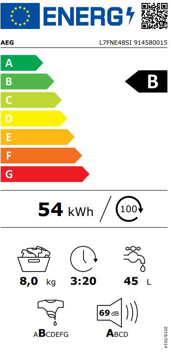 AEG L7FNE48SI Εντοιχιζόμενο Πλυντήριο Ρούχων 8kg, 1400 Στροφών, με Ατμό, Β, Λευκό