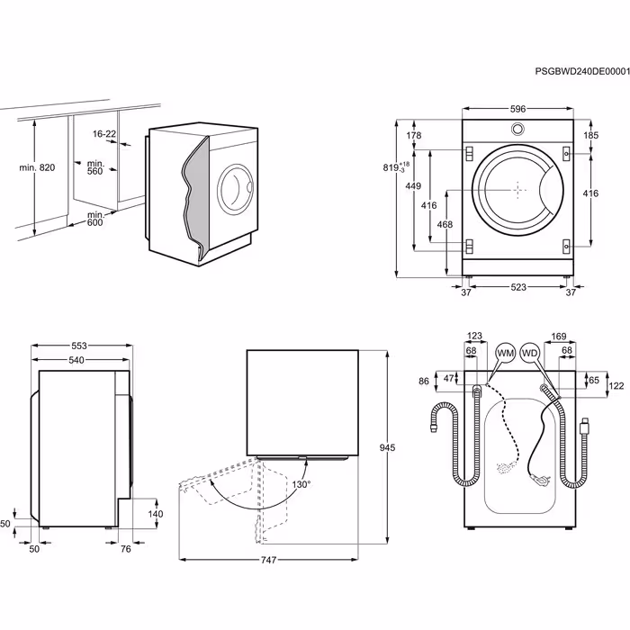AEG L8FBE48SCI Εντοιχιζόμενο Πλυντήριο Ρούχων 8kg, 1400 Στροφών, με Ατμό & Wifi, A, Λευκό