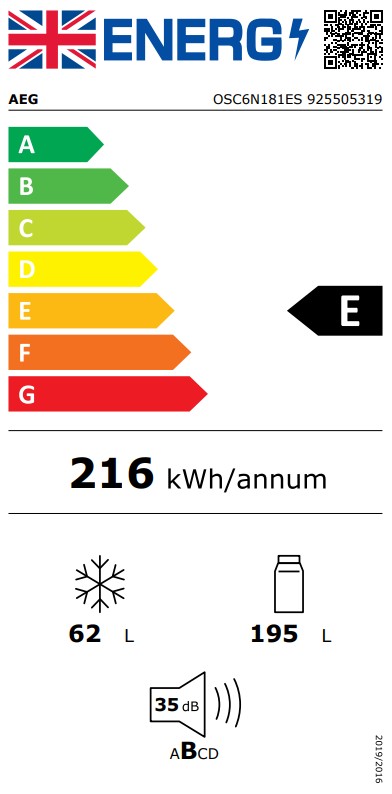 AEG OSC6N181ES Εντοιχιζόμενος Ψυγειοκαταψύκτης 257lt, NoFrost, E (Υ177,2xΠ54,6xΒ54,9εκ)
