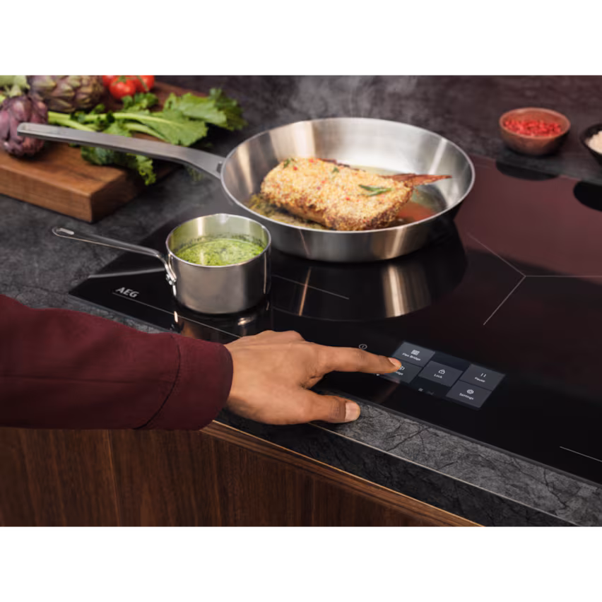 Με την έγχρωμη οθόνη αφής TFT, παίρνεις τον απόλυτο έλεγχο. Διάλεξε ζώνες, θερμοκρασίες και λειτουργίες εύκολα, με λίγα πατήματα. Και αν θέλεις ακόμα περισσότερα, σύνδεσε την εστία στην εφαρμογή AEG και μαγείρεψε με στυλ, ακόμα και από το κινητό σου!