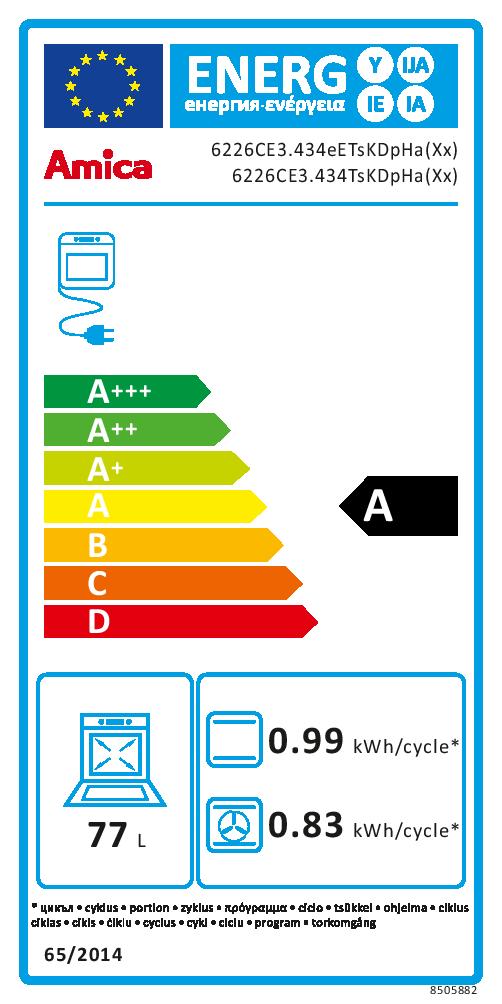 Amica 6226CE3.434eETsKDpHa(Xx) Eλεύθερη Κουζίνα 77lt, με Κεραμικές Εστίες, Π60εκ, Α, Inox