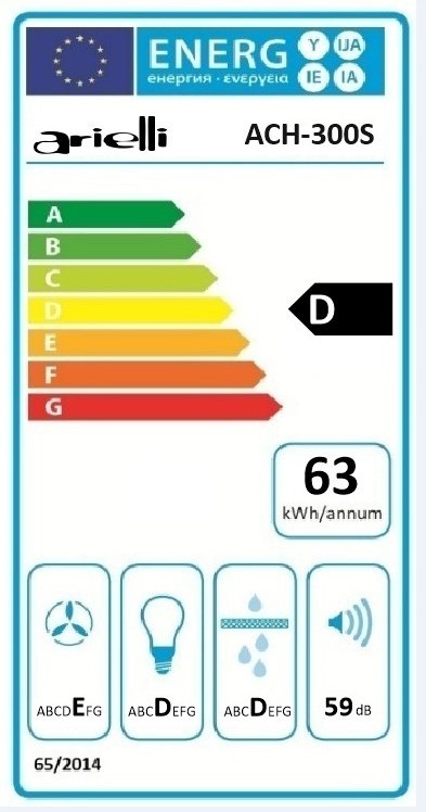 Arielli ACH-300S Απορροφητήρας Καμινάδα 60cm, D, Inox