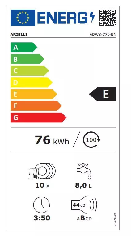 Arielli ADW8-7704IN Πλήρως Εντοιχιζόμενο Πλυντήριο Πιάτων για 10 Σερβίτσια, Π45xY81,5εκ, Ε