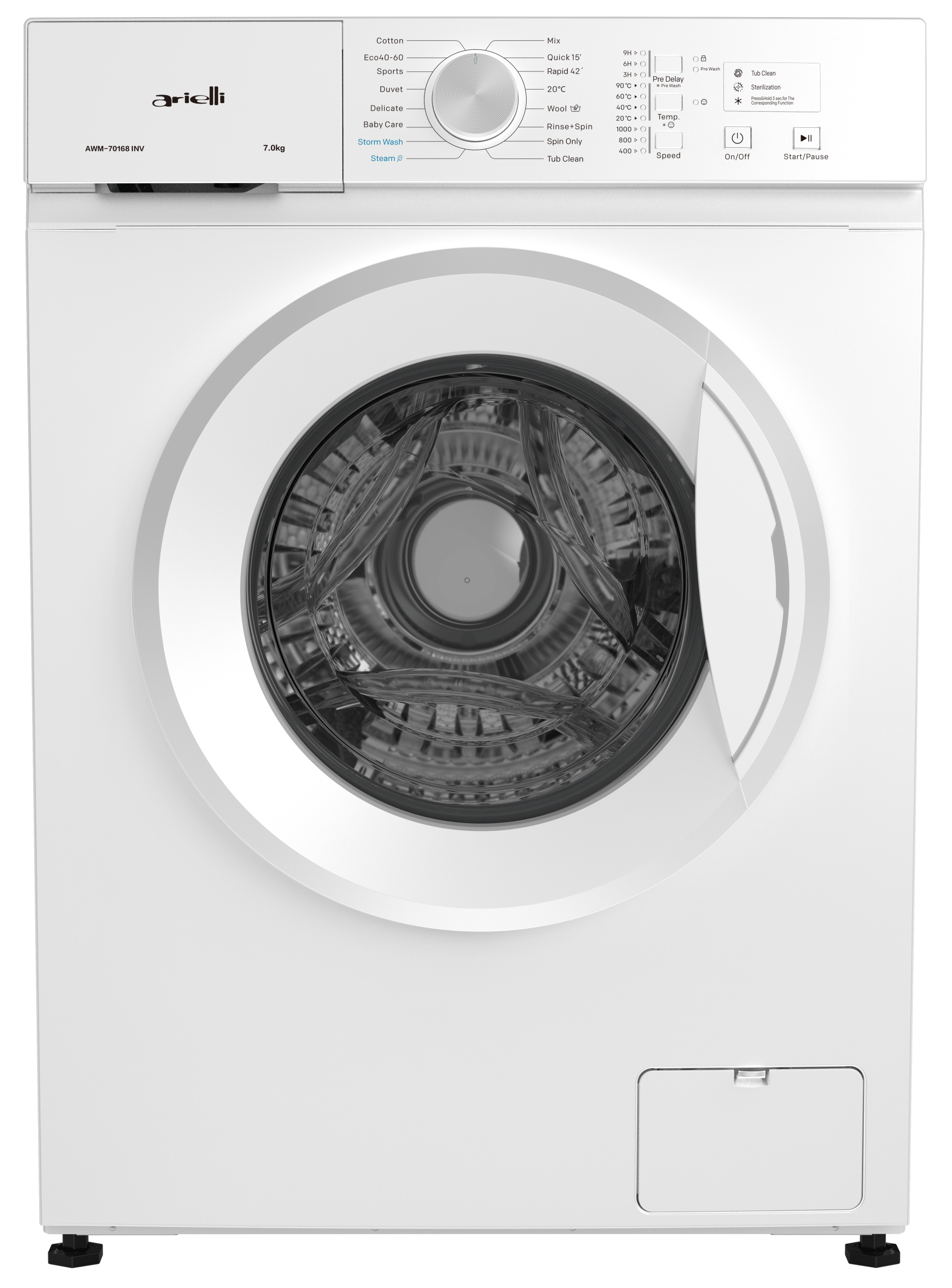 Arielli AWM-70168 INV Πλυντήριο Ρούχων 7kg, 1200 Στροφών, με Ατμό, Α, Λευκό