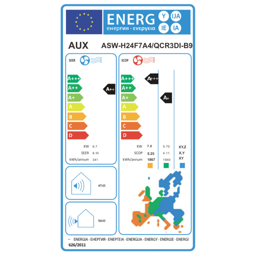 Το κλιματιστικό Q-Series ASW-H24B4/Q της εταιρείας AUX, έχει ισχύ 24000 BTU και είναι κατάλληλο για χώρους από 50m² έως 55m².