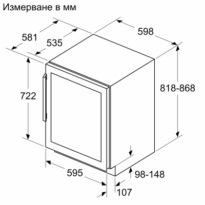 Bosch KUW21AHG0 Eντοιχιζόμενος Συντηρητής Κρασιών 44lt, G (Υ81,8xΠ59,8xΒ58,1εκ) Μαύρος