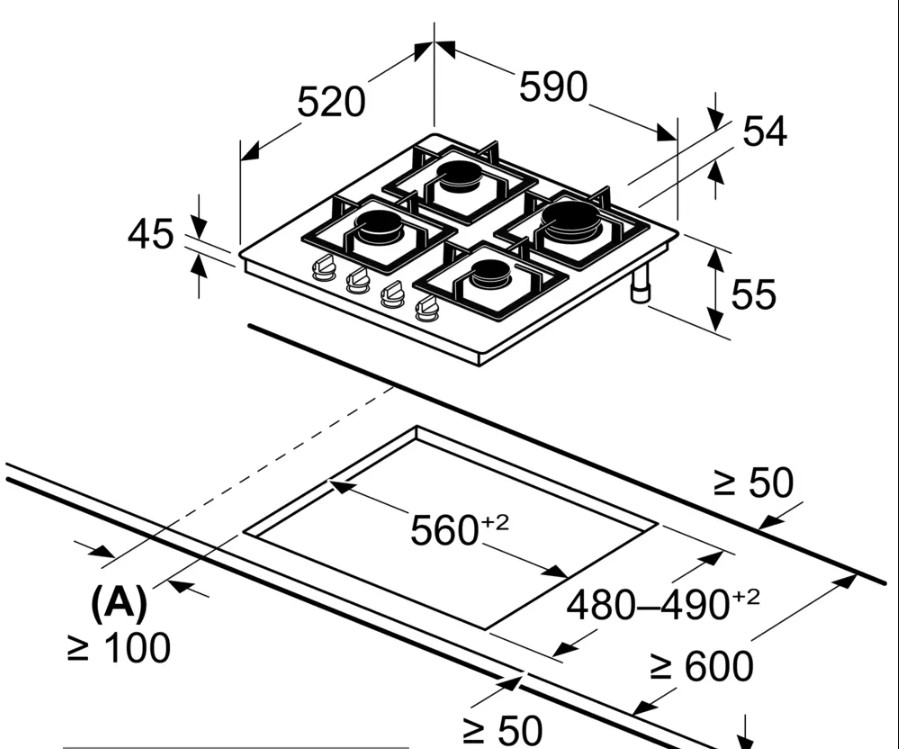 Bosch PPP6A6I40 Aυτόνομη Εστία Αερίου, Π59xΒ52εκ, Μαύρη