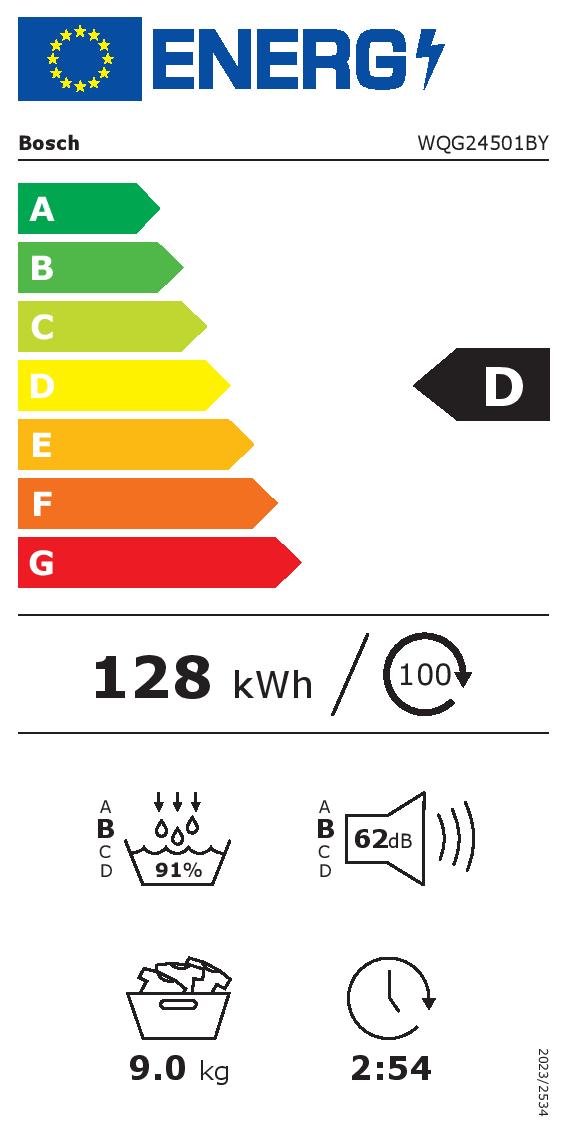 Bosch WQG24501BY Στεγνωτήριο Ρούχων 9kg, με Αντλία θερμότητας, D, Λευκό