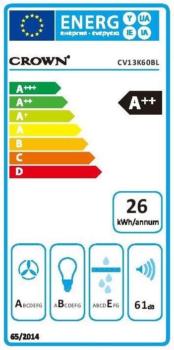 Crown CV13K60BL Aπορροφητήρας Καμινάδα, 60cm, A++, Μαύρος