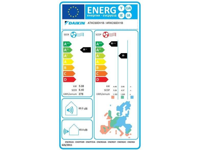 Το κλιματιστικό ανήκει στην ενεργειακή κλάση A++, στην ψύξη και στην ενεργειακή κλάση A+++ στη θέρμανση (Θερμή ζώνη). Η ενεργειακή κλάση μετριέται σε μια χρωματική κλίμακα επτά βαθμίδων από Α+++ έως D, με την κλάση Α+++ να είναι η αποδοτικότερη, ενώ αντίθετα η κλάση D, η ελάχιστα αποδοτική.