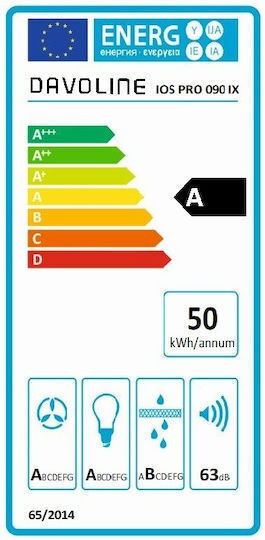 Davoline IOS ULTRA PLUS 090 GR-IX Συρόμενος Απορροφητήρας 90cm, Α, Inox (3 Έτη Εγγύηση)