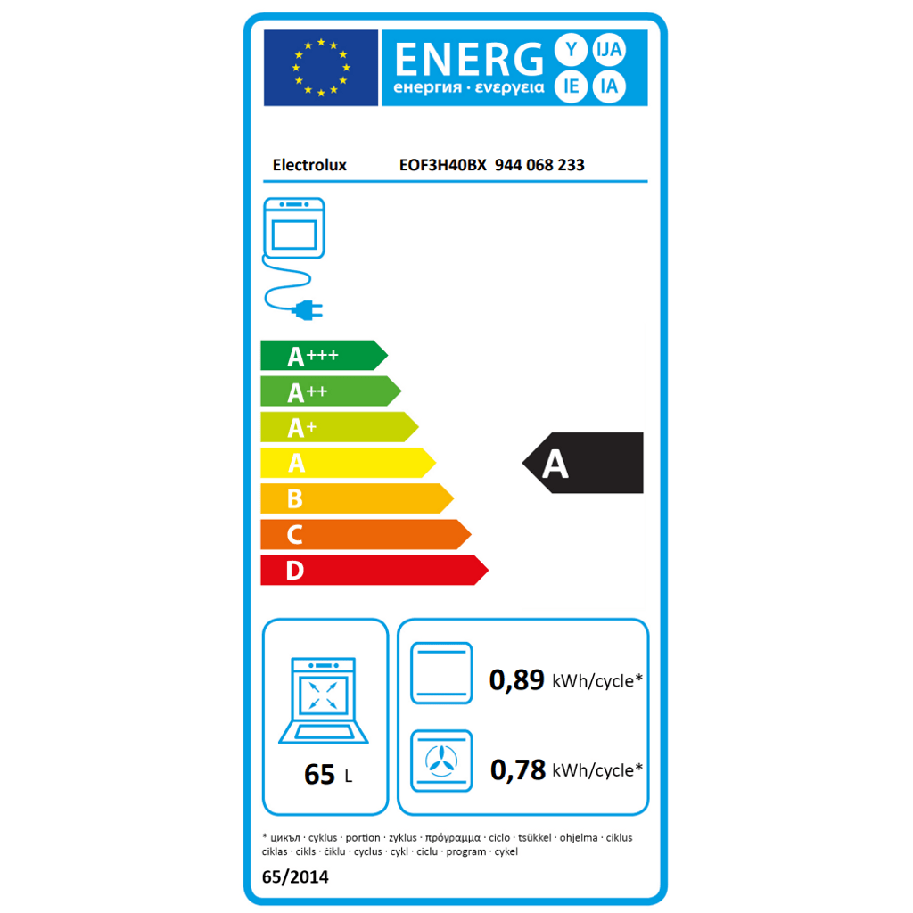 Χωρητικότητα Φούρνου: 65 lt