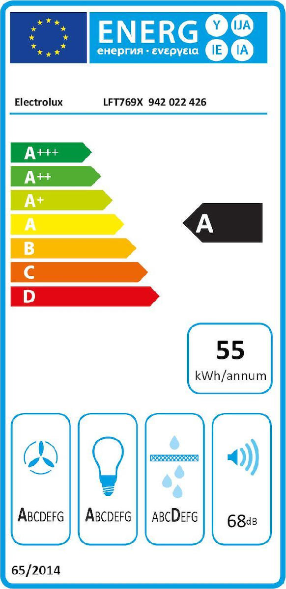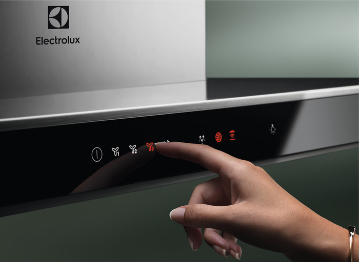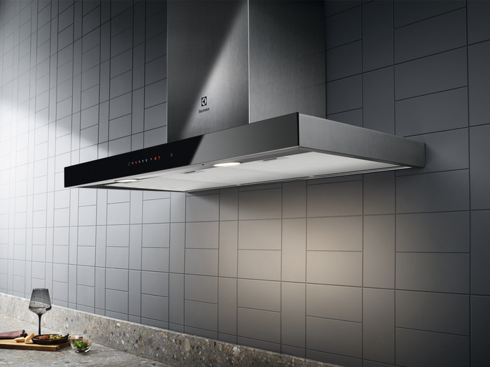 Ο απορροφητήρας της εταιρείας Electrolux, ενεργειακής κλάσης A, τοποθετείται στον τοίχο. Είναι σχεδιασμένος έτσι ώστε να καλύπτει τον σωλήνα εξαγωγής αέρα και να μοιάζει με καμινάδα.