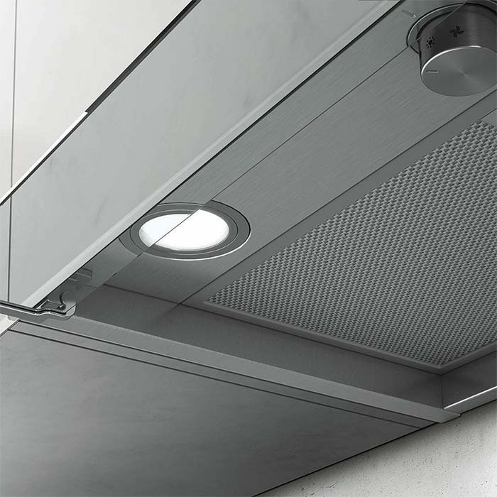 Ο απορροφητήρας της εταιρείας Elica, ενεργειακής κλάσης A, είναι εντοιχιζόμενος. Τοποθετείται σε ντουλάπια με τέτοιο τρόπο, ώστε να είναι ορατή μόνο η κάτω επιφάνειά του.