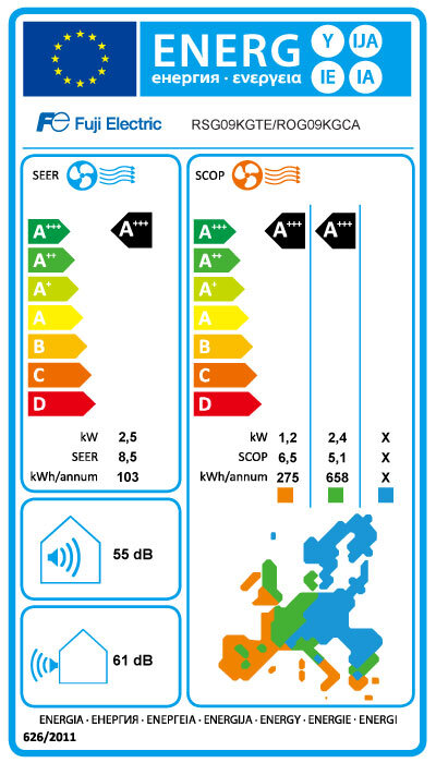Fuji Electric RSG-09KGTE/ROG-09KGCA Οικιακό Κλιματιστικό Inverter 9000BTU, με Iονιστή, A+++/A+++, Λευκό