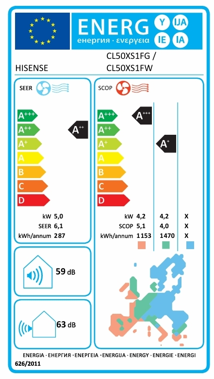 Hisense Europa CL50XS1FG/CL50XS1FW Oικιακό Κλιματιστικό Inverter 18000BTU, με Ιονιστή & Wifi, A++/A+++, Λευκό