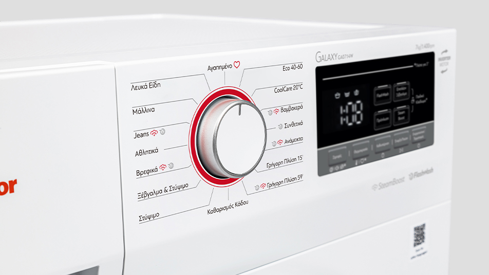 Τα νέα πλυντήρια ρούχων Galaxy συνδυάζουν σύγχρονη τεχνολογία, υψηλή ενεργειακή απόδοση και λειτουργίες που κάνουν την καθημερινότητα πιο εύκολη από ποτέ. Το Inverter Μοτέρ προσφέρει αθόρυβη λειτουργία, κορυφαία απόδοση και χαμηλή κατανάλωση ενέργειας, ενώ η Ενεργειακή Κλάση Α-10% εξασφαλίζει 10% πιο χαμηλή κατανάλωση ενέργειας σε σχέση με ένα πλυντήριο ενεργειακής κλάσης Α. Η λειτουργία CoolCare 20°C καθαρίζει τα ρούχα σας, προστατεύοντας τα υφάσματα και τα χρώματά τους. Ακόμη, η λειτουργία FlashWash μειώνει τον συνολικό χρόνο πλύσης, χωρίς να επηρεάζεται η αποτελεσματικότητα του προγράμματος. Η Αυτόματη Ζύγιση Φορτίου προσαρμόζει την κατανάλωση νερού, προσφέροντας ταυτόχρονα εξοικονόμηση ενέργειας σε κάθε κύκλο. Επιπλέον, η λειτουργία SteamBoost προσθέτει ατμό στην αρχή του κύκλου, χαρίζοντας πιο βαθιά καθαριότητα, αποστείρωση, αίσθηση φρεσκάδας και λιγότερο τσαλάκωμα.