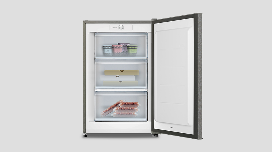 Πρακτικός, οικονομικός και αξιόπιστος, ο νέος κάθετος καταψύκτης 90 λίτρων αποτελεί ιδανική λύση για κάθε νοικοκυριό με αυξημένες ανάγκες αποθήκευσης. Συνδυάζει μεγάλη χωρητικότητα, ενεργειακή αποδοτικότητα και λειτουργική ευκολία, προσφέροντας άνεση και σιγουριά κάθε στιγμή. Με σύστημα ταχείας κατάψυξης για άμεση διατήρηση της φρεσκάδας, πρακτικά διαμορφωμένους αποθηκευτικούς χώρους που προσφέρουν εύκολη πρόσβαση στα τρόφιμα και αναστρέψιμη πόρτα για απόλυτη ευελιξία τοποθέτησης, καλύπτει πλήρως κάθε ανάγκη του σύγχρονου νοικοκυριού. Ένα μοντέλο που ανταποκρίνεται στις απαιτήσεις της καθημερινότητας, εξασφαλίζοντας τέλειες συνθήκες ψύξης, χαμηλή κατανάλωση ενέργειας και απρόσκοπτη, αθόρυβη λειτουργία σε κάθε χρήση.