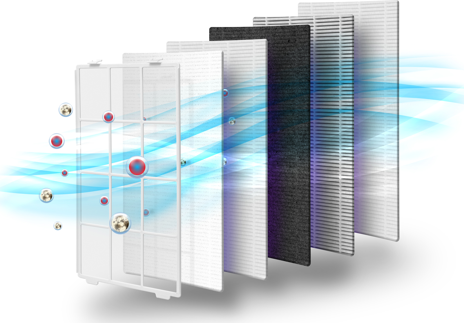 Εξασφαλίστε καθαρό & υγιεινό αέρα στον χώρο σας, χάρη στην αποτελεσματικότητα των 6 σταδίων φιλτραρίσματος και του Ιονιστή. Το υψηλό επίπεδο φιλτραρίσματος με δυνατότητα συγκράτησης του 99,97% των σωματιδίων σας εγγυάται την άριστη ποιότητα του αέρα στον χώρο σας, ενώ ο Ιονιστής παράγει ιόντα εξαλείφοντας μυρωδιές, σκόνη και καπνό.