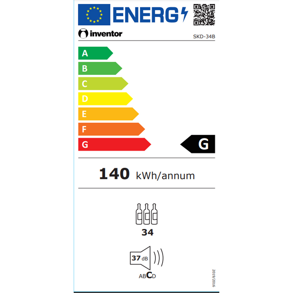 Inventor SKD-34B Συντηρητής Κρασιών 34 Φιαλών, G (Υ85xΠ47,5xΒ45,6εκ) Μαύρος (3 Έτη Εγγύηση)