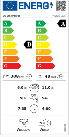 Είναι ενεργειακής κλάσης D, που σημαίνει ότι προσφέρει συνολικά λίγο μεγαλύτερη κατανάλωση, σε σχέση με τα υπόλοιπα πλυντήρια - στεγνωτήρια ρούχων ενεργειακής κλάσης C και άνω.