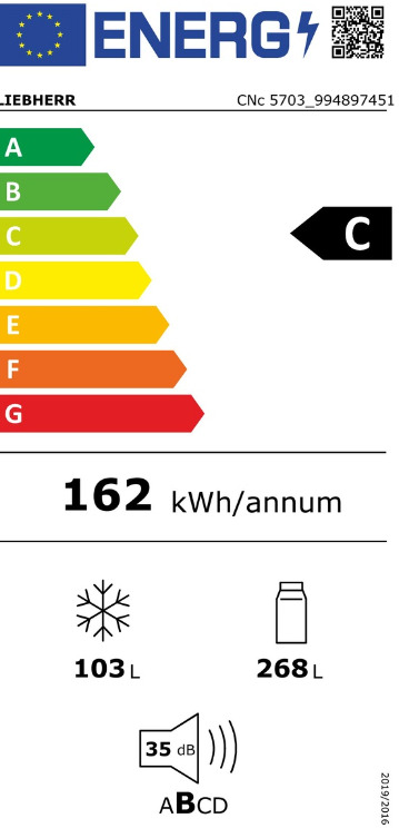 Liebherr CNc 5703 Ψυγειοκαταψύκτης 371lt, Total NoFrost, C (Υ201,5xΠ59,7xΒ67,5εκ) Λευκός