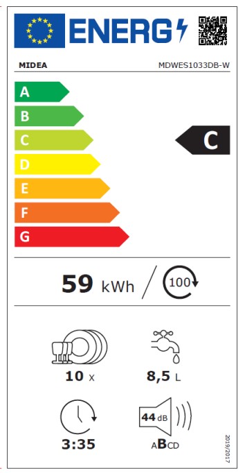 Midea MDWES1033DB Εντοιχιζόμενο Πλυντήριο Πιάτων για 10 Σερβίτσια, με Wifi, Π45cm, C (3 Έτη Εγγύηση)