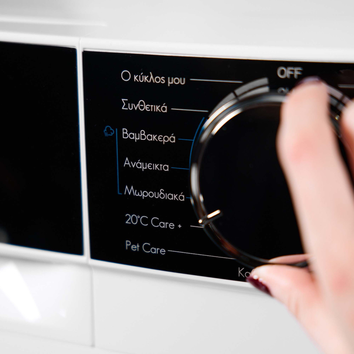 Βαμβακερά, Ανάμεικτα, Μωρουδιακά, Γρήγορο 15', Στέγνωμα, Πλύσιμο & Στέγνωμα, Συνθετικά, Καθαρισμός Κάδου, Pet Care, 20C, Σύντομο 59', ECO 40-60, Μάλλινα, Ογκώδη, Μόνο Στύψιμο