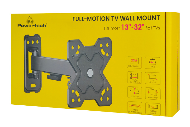 Powertech PT-1277 Βάση Τηλεόρασης Τοίχου με Βραχίονα έως 32" και 20kg
