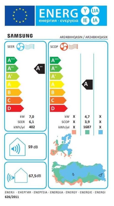 Βαθμός Απόδοσης Θέρμανσης (SCOP): 3,9 W/W