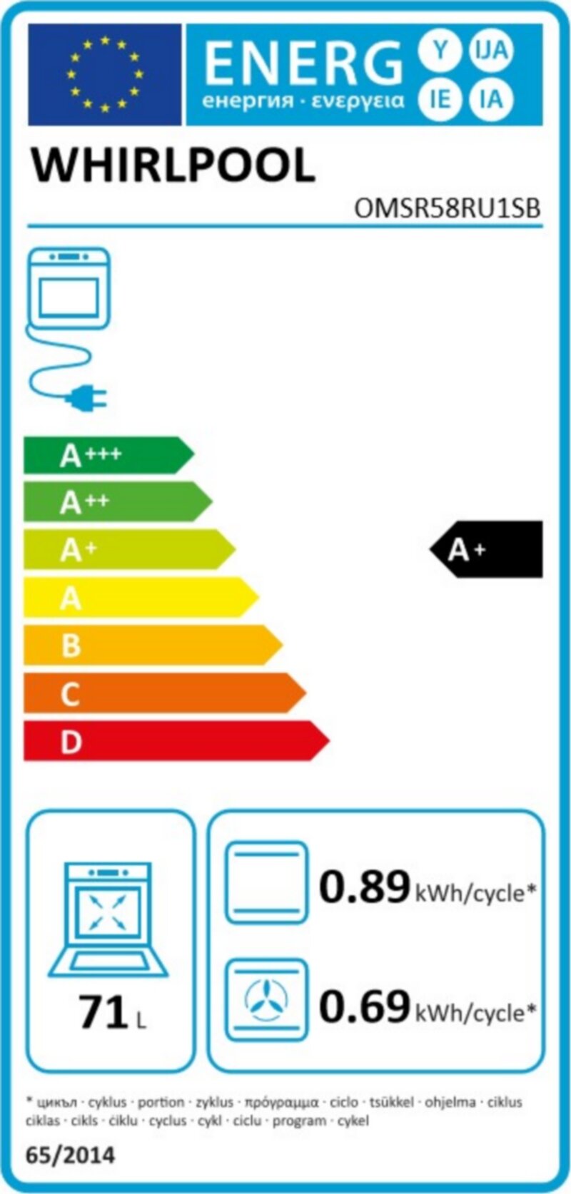 Whirlpool OMSR58RU1SB Φούρνος άνω Πάγκου 71lt, χωρίς Εστίες, Π60εκ, με Ατμό & Πυρόλυση, Α+, Μαύρος