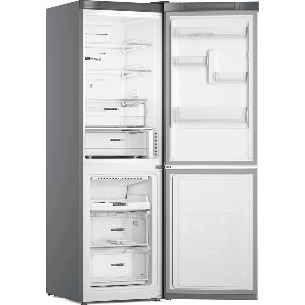 Ψυγειοκαταψύκτης της Whirlpool με χωρητικότητα 335 λίτρα, που μπορεί να καλύψει άνετα τις ανάγκες ενός ζευγαριού ή και μιας οικογένειας 3 ατόμων. Χάρη στην τεχνολογία Total No Frost, αποφεύγεται ο σχηματισμός πάγου και επομένως δεν απαιτείται απόψυξη, καθώς με τη σταθερή κυκλοφορία του αέρα κατανέμεται ομοιόμορφα η ψύξη στους θαλάμους. Αυτό έχει σαν αποτέλεσμα να διατηρούνται τα τρόφιμα φρέσκα για μεγαλύτερο χρονικό διάστημα, ενώ παράλληλα δεν αναπτύσσονται εύκολα άσχημες μυρωδιές ή μούχλα. Θεωρείται αθόρυβο, 39db, χάρη στο χαμηλό επίπεδο θορύβου που διαθέτει.