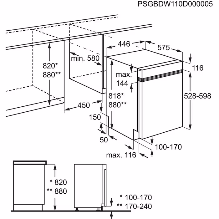 AEG FEE73517PM GlassCare Ημι-Εντοιχιζόμενο Πλυντήριο Πιάτων για 10 Σερβίτσια, Π45εκ, D, Inox