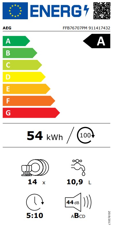 AEG FFB76707PM Eλεύθερο Πλυντήριο Πιάτων για 14 Σερβίτσια, Π60εκ, Α, Inox