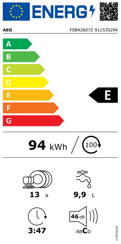 AEG FSB42607Z AirDry Πλήρως Εντοιχιζόμενο Πλυντήριο Πιάτων για 13 Σερβίτσια, Π60εκ, Ε