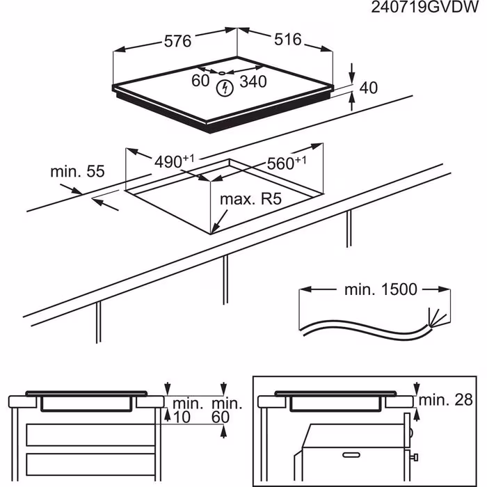 Διαστάσεις & ισχύς ζωνών μαγειρέματος: