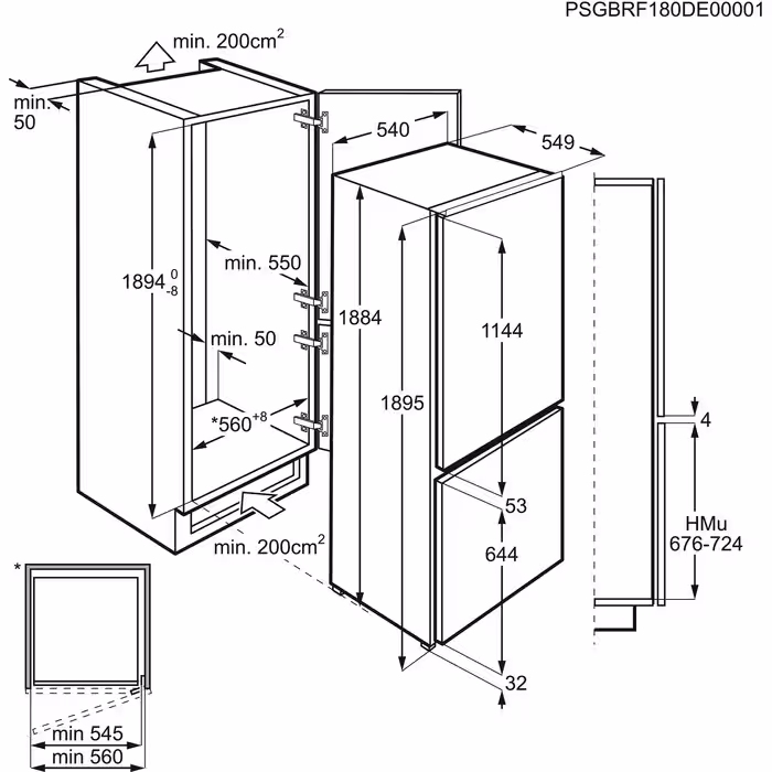 AEG SCE819E5TS Εντοιχιζόμενος Ψυγειοκαταψύκτης 269lt, NoFrost, E (Y188,4xΠ54,8xΒ54,9εκ)