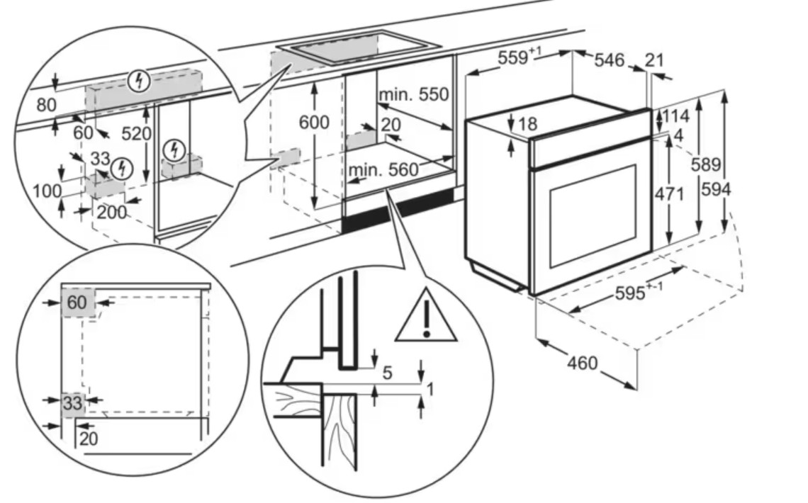 AEG TA5PB53APB Φούρνος άνω Πάγκου 71lt, χωρίς Εστίες, Π59,5εκ, με Ατμό & Πυρόλυση, Α+, Μαύρος