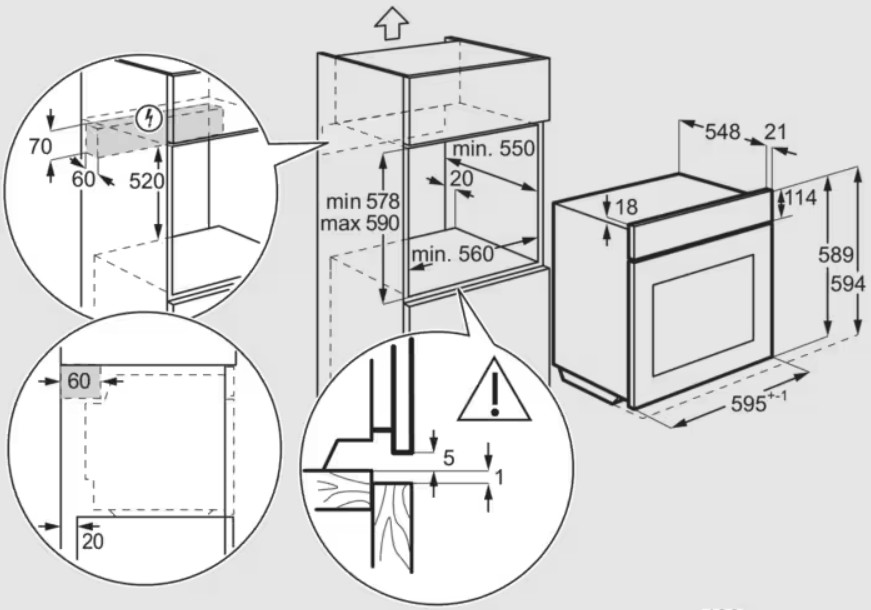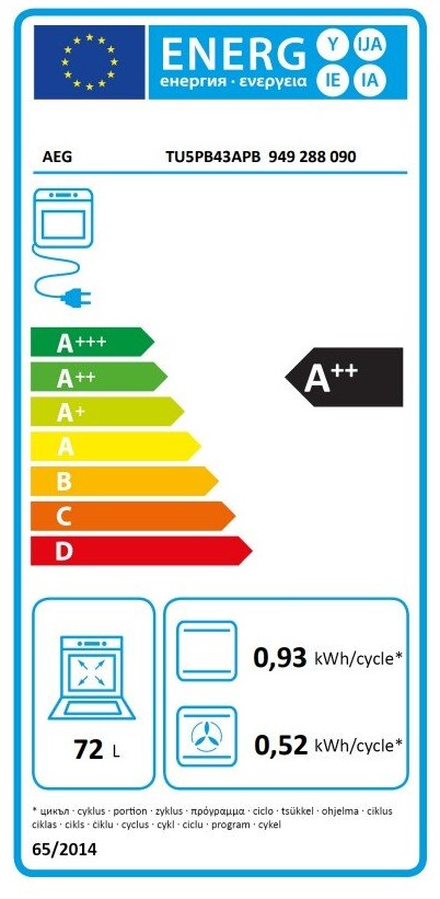 AEG TU5PB43APB Φούρνος άνω Πάγκου 72lt, χωρίς Εστίες, Π59,6εκ, με Πυρόλυση, Α++, Μαύρος