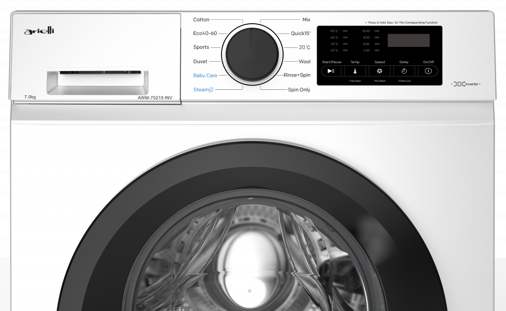 Arielli AWM-70215 INV Πλυντήριο Ρούχων 7kg, 1200 Στροφών, με Ατμό, Α, Λευκό