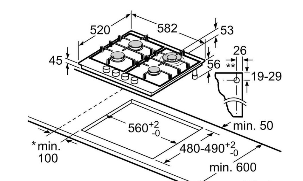 Bosch PGH6B5K90 Αυτόνομη Εστία Αερίου, Π58,2xΒ52εκ, Inox