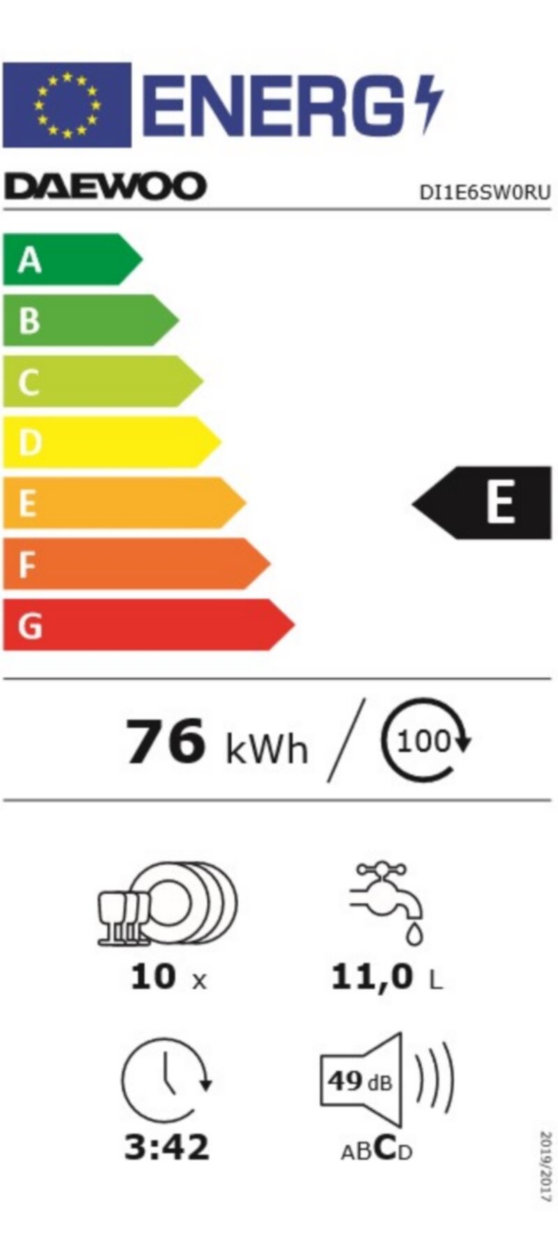 Daewoo DI1E6SW0RU Πλήρως Εντοιχιζόμενο Πλυντήριο Πιάτων για 10 Σερβίτσια, Π60cm, Ε