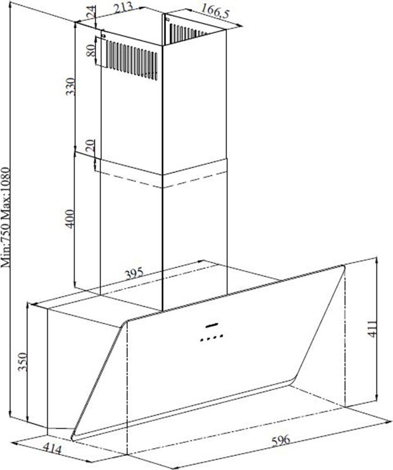 Επιτοίχιο καμίνι Davoline Shape με απορροφητικότητα 648 m³/h, ετήσια ενεργειακή κατανάλωση: 48.6 kWh και διακόπτες αφής.