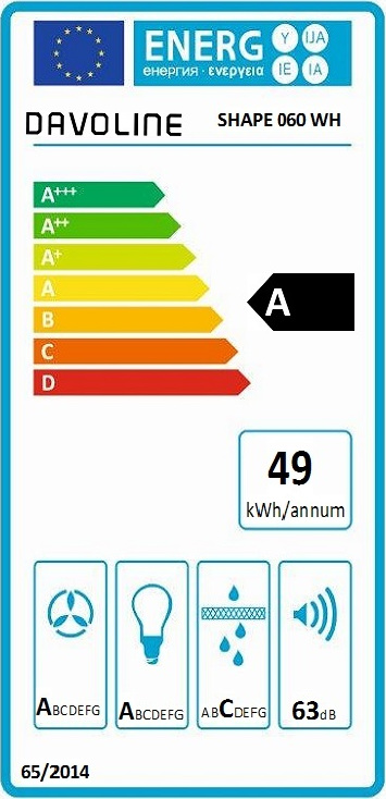 Davoline SHAPE WH 60 Απορροφητήρας Καμινάδα 60cm, A, Λευκός (3 Έτη Εγγύηση)