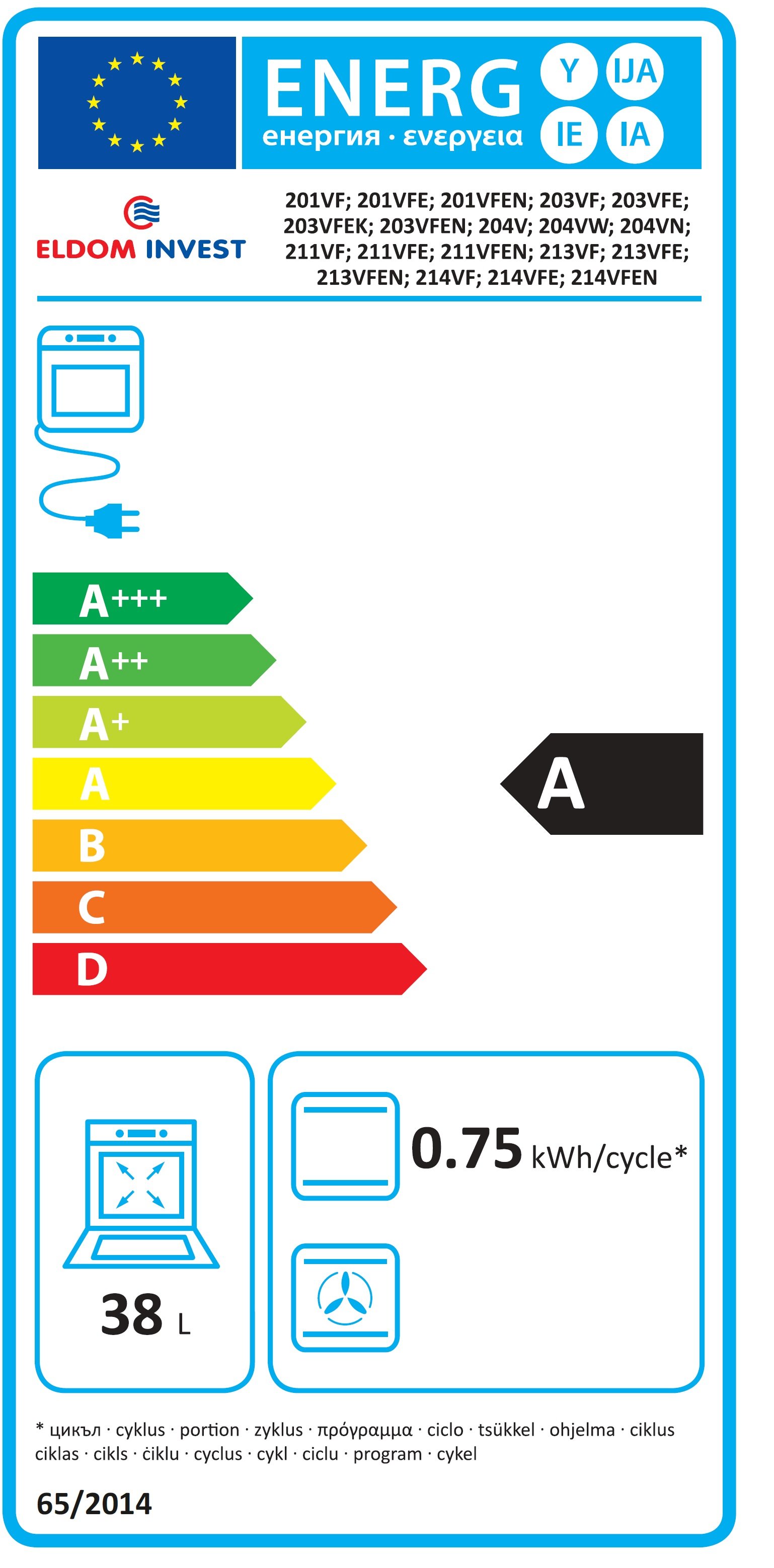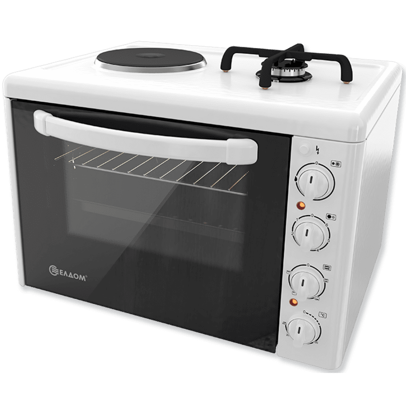 Eldom 213VFEN Μικτό Ηλεκτρικό Φουρνάκι 38lt, με 2 Εστίες (Ρευμα,Υγραέριο) Λευκό