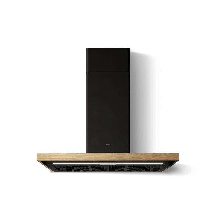 Κατόπιν παραγγελίαςΈνας επιτοίχιος απορροφητήρας με πρωτότυπο σχεδιασμό, διαθέσιμος σε ματ μαύρο φινίρισμα, που συμπληρώνεται από ειδικές πινελιές από ξύλο βελανιδιάς.