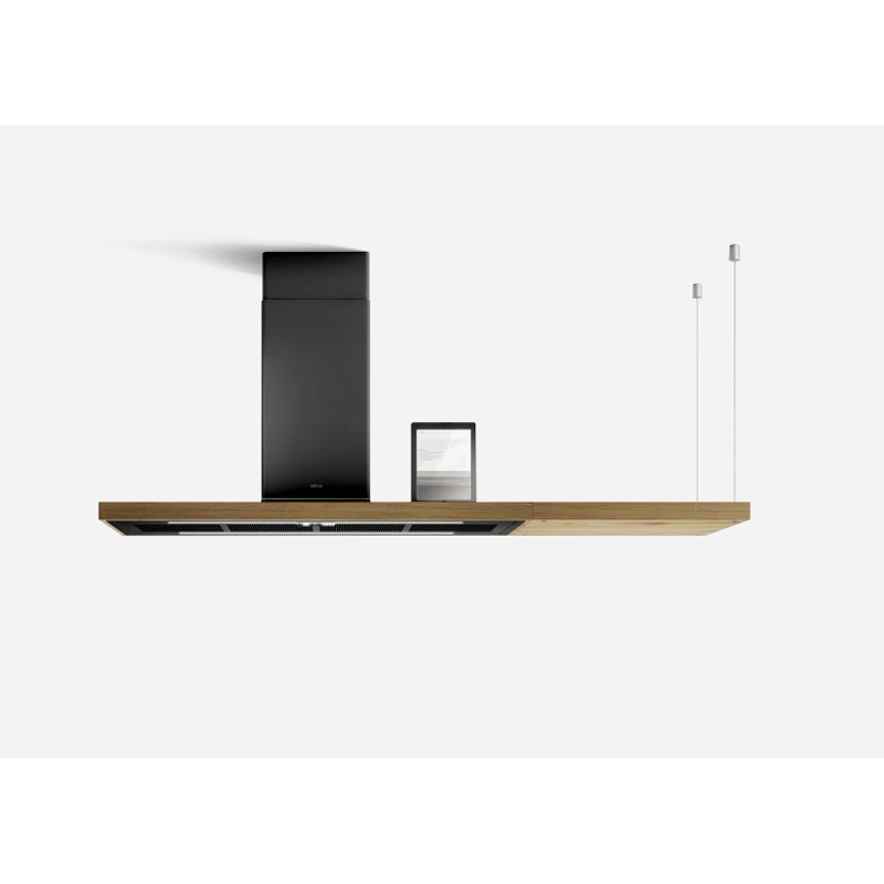 Κατόπιν παραγγελίαςΈνας απορροφητήρας-νησί με πρωτότυπο σχεδιασμό, διαθέσιμος σε ματ μαύρο φινίρισμα που συμπληρώνεται από ειδικές πινελιές από ξύλο βελανιδιάς.
