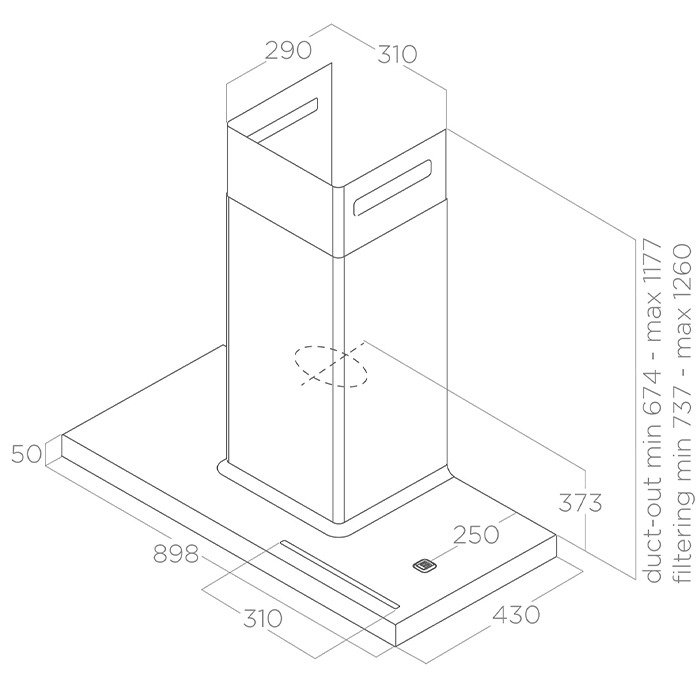 Η μέγιστη απορροφητική ισχύς είναι 496 m³/h, η οποία μπορεί να καλύψει ικανοποιητικά χώρους έως και 17 τετραγωνικά μέτρα (με ύψος 2,85 μέτρα). Επιπλέον διαθέτει και λειτουργία αυξημένης έντασης στα 757 m³/h για σύντομο χρονικό διάστημα, ιδιαίτερα χρήσιμη για την αντιμετώπιση οσμών κατά το τηγάνισμα και το ψήσιμο στο grill.