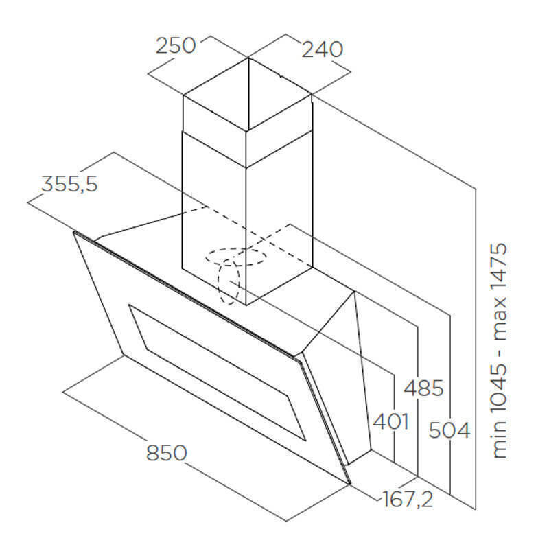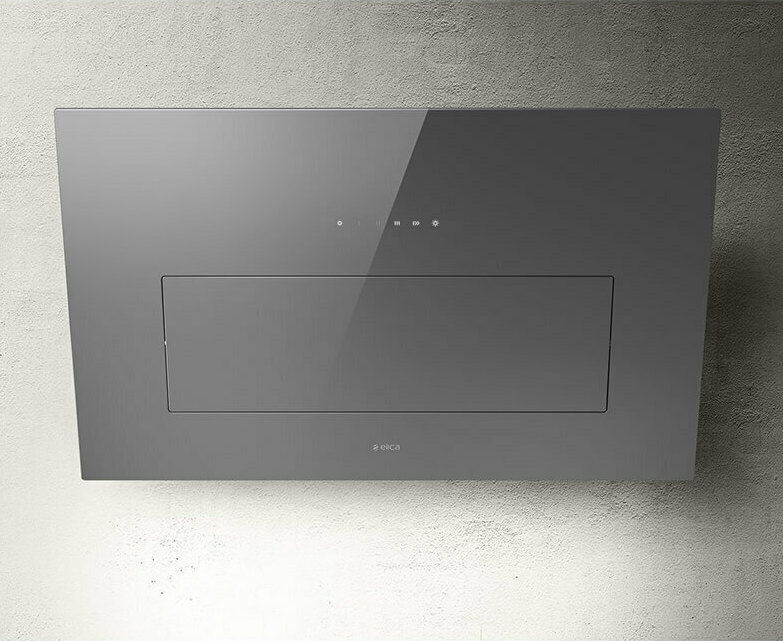 Ο απορροφητήρας της εταιρείας Elica, ενεργειακής κλάσης A, τοποθετείται στον τοίχο. Είναι σχεδιασμένος έτσι ώστε να καλύπτει τον σωλήνα εξαγωγής αέρα και να μοιάζει με καμινάδα.