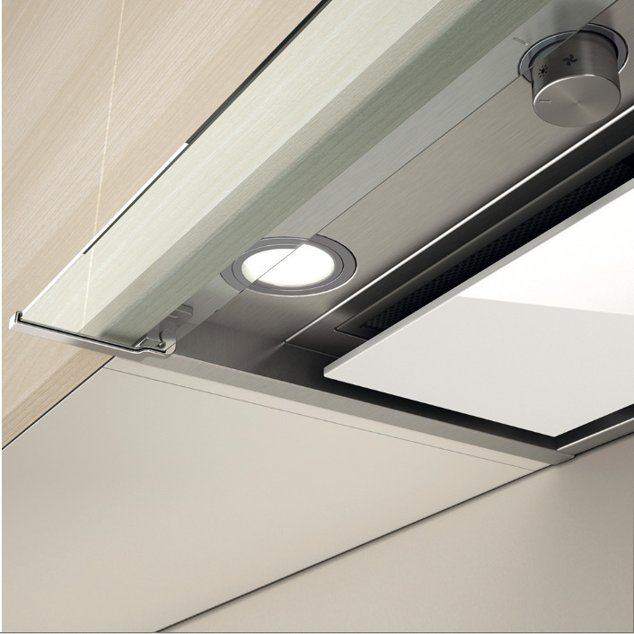 Χάρη στον λιτό σχεδιασμό του και στην ιδιότητά του να κρύβεται κάτω από τα ντουλάπια, ο Elica Boxin Plus προσφέρει απόλυτη ομοιογένεια στην κουζίνα.